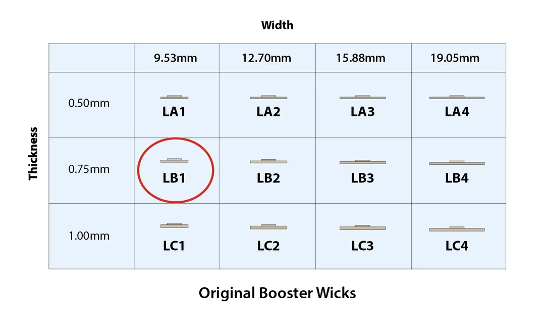 THE ORIGINAL BOOSTER WICK FITTED WITH A 5MM BOOSTER WICK.