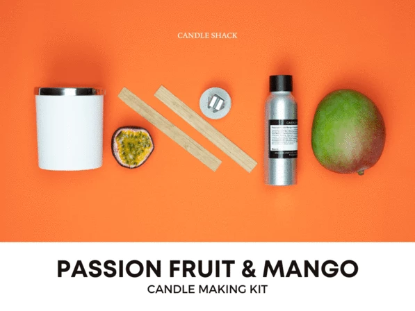 This candle making kit comes with Passion Fruit & Mango fragrance oil – a tempting tropical cocktail with a base of indulgent coconut milk.